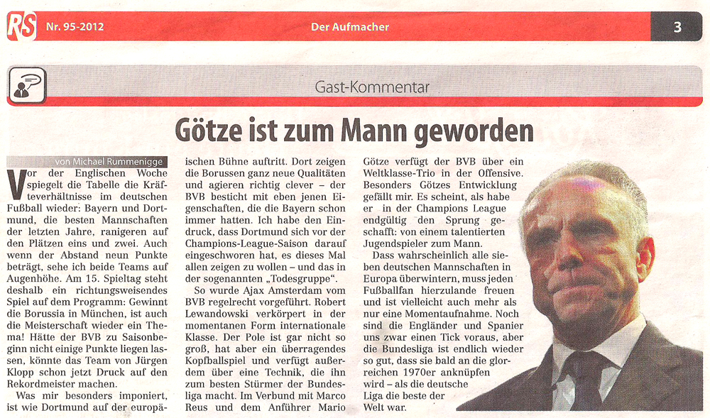 Michael Rummenigge mit einem Gastkommentar in der Reviersport-Ausgabe vom 26.11.2012